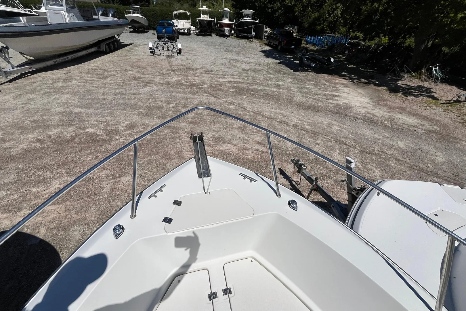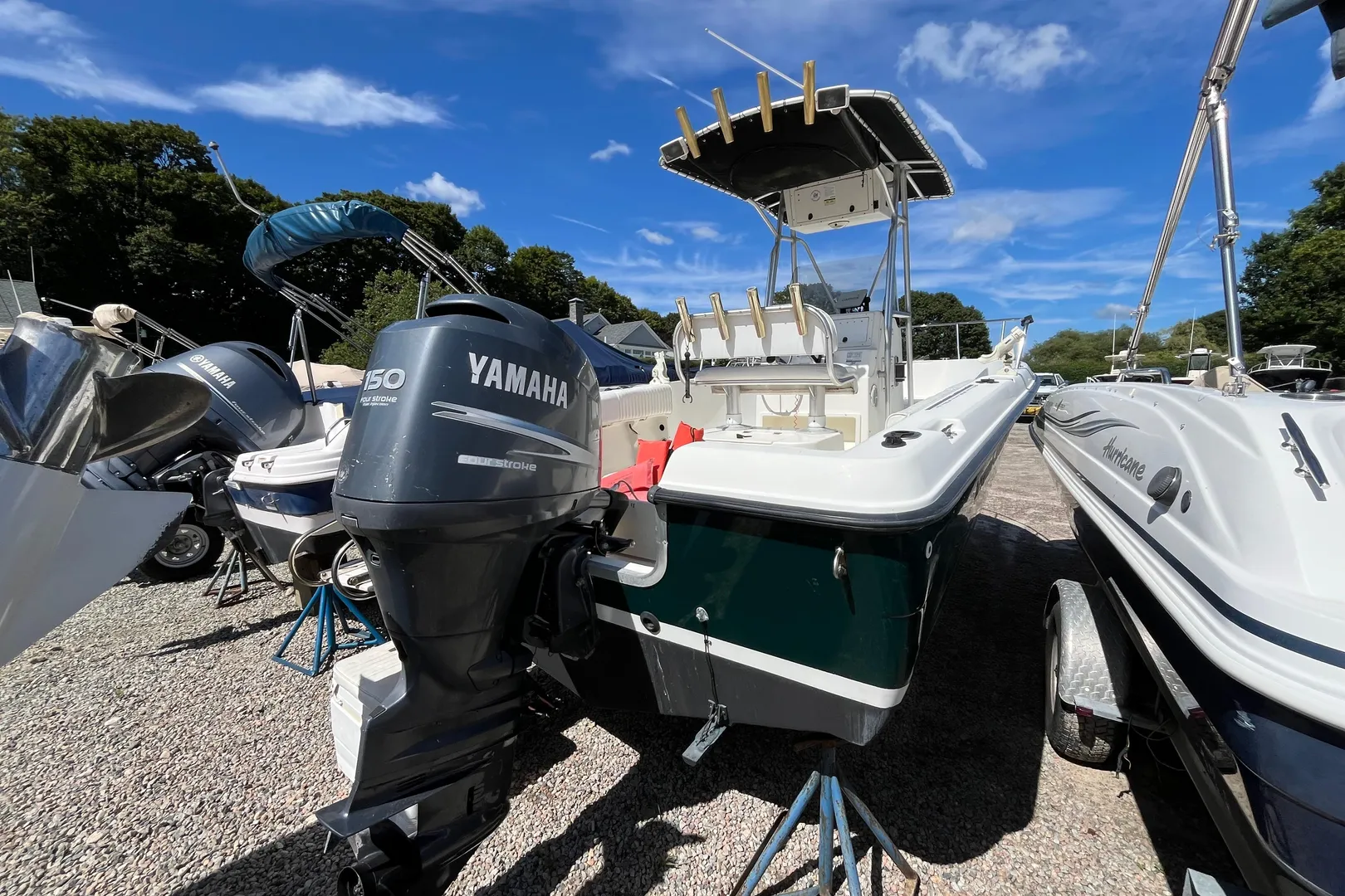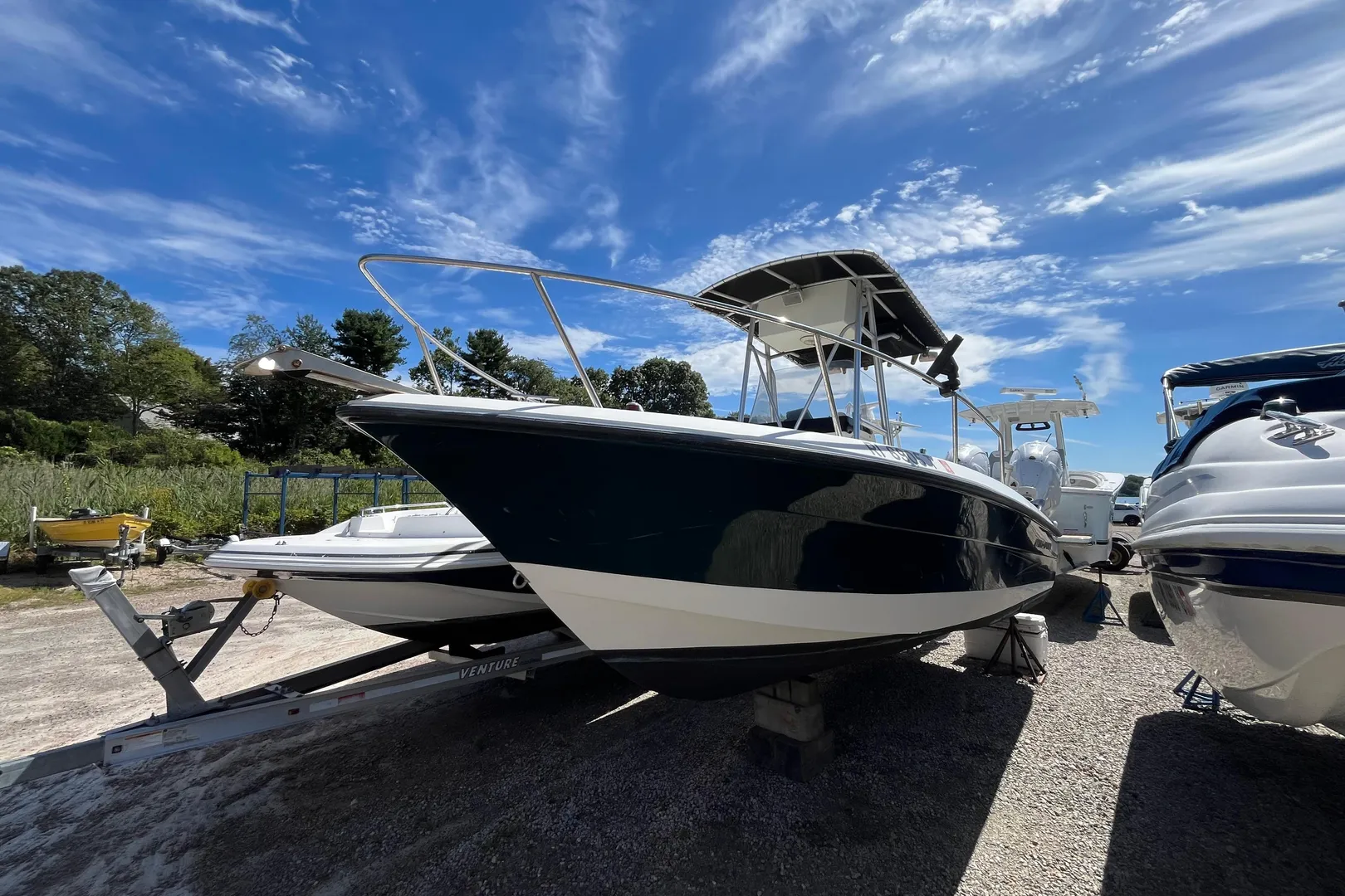 This boat does not have a trailer, but brand-new trailers are available/in-stock for purchase to complete your package.