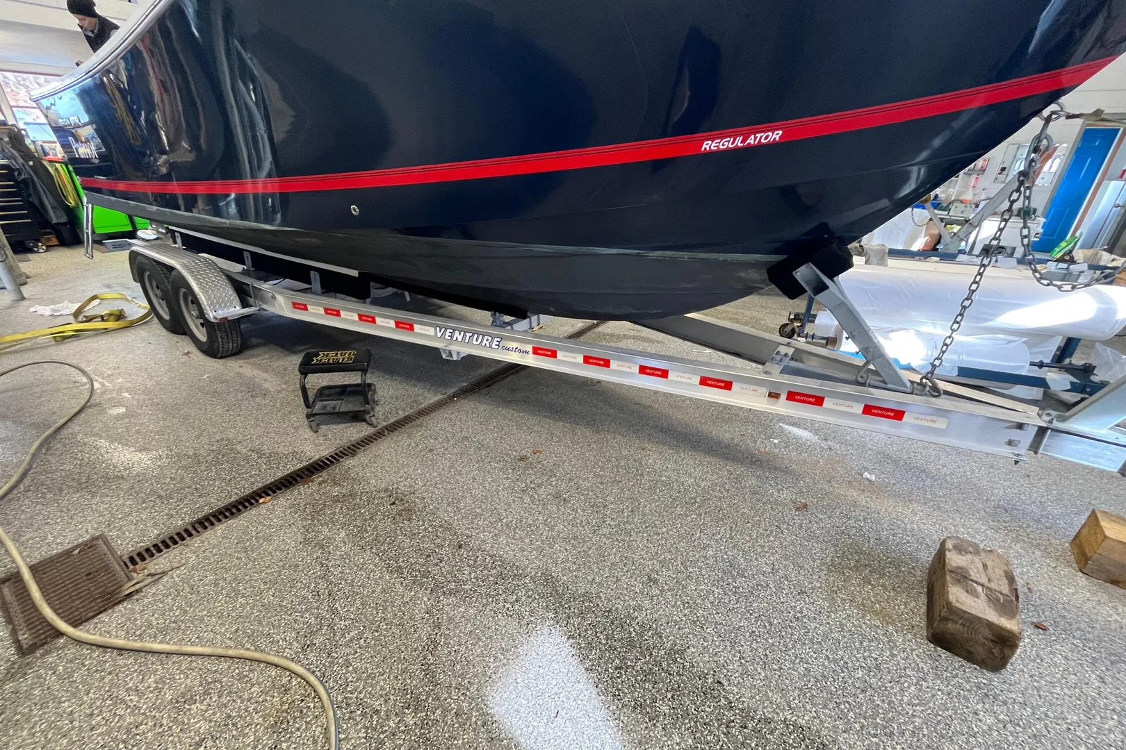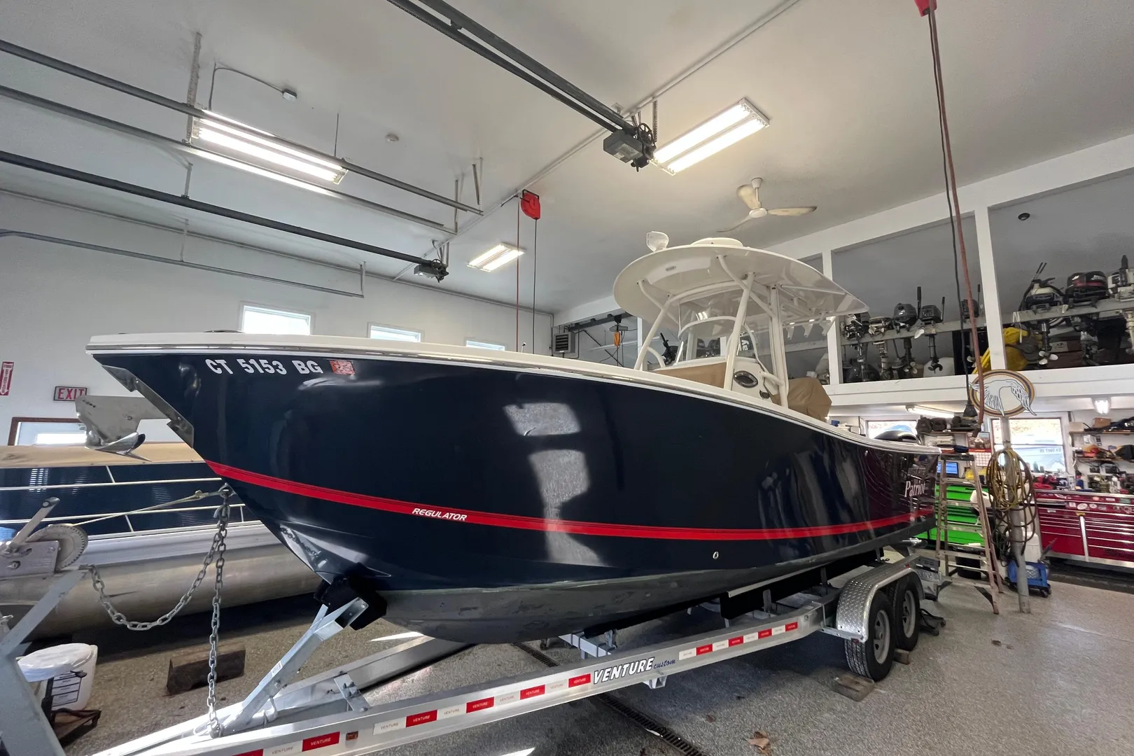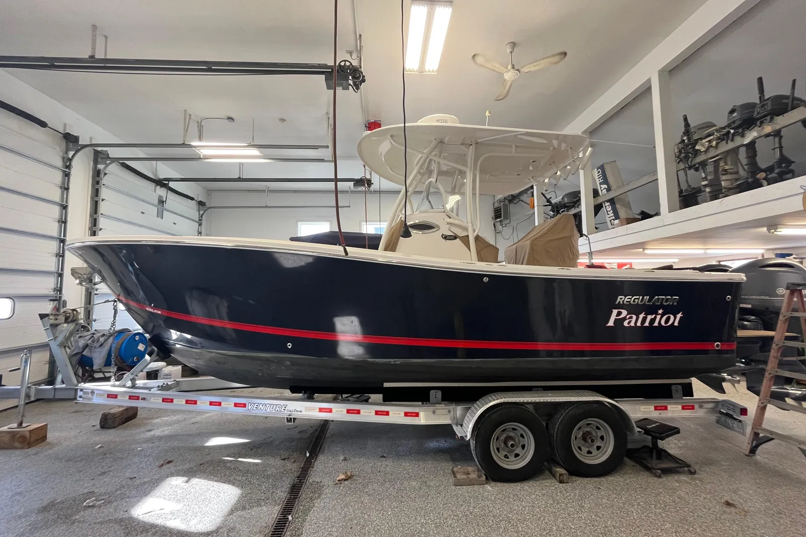The sale includes a custom 2020 Venture VATB-8725 trailer, equipped with an anchor windlass stop and disc brakes on both axles.