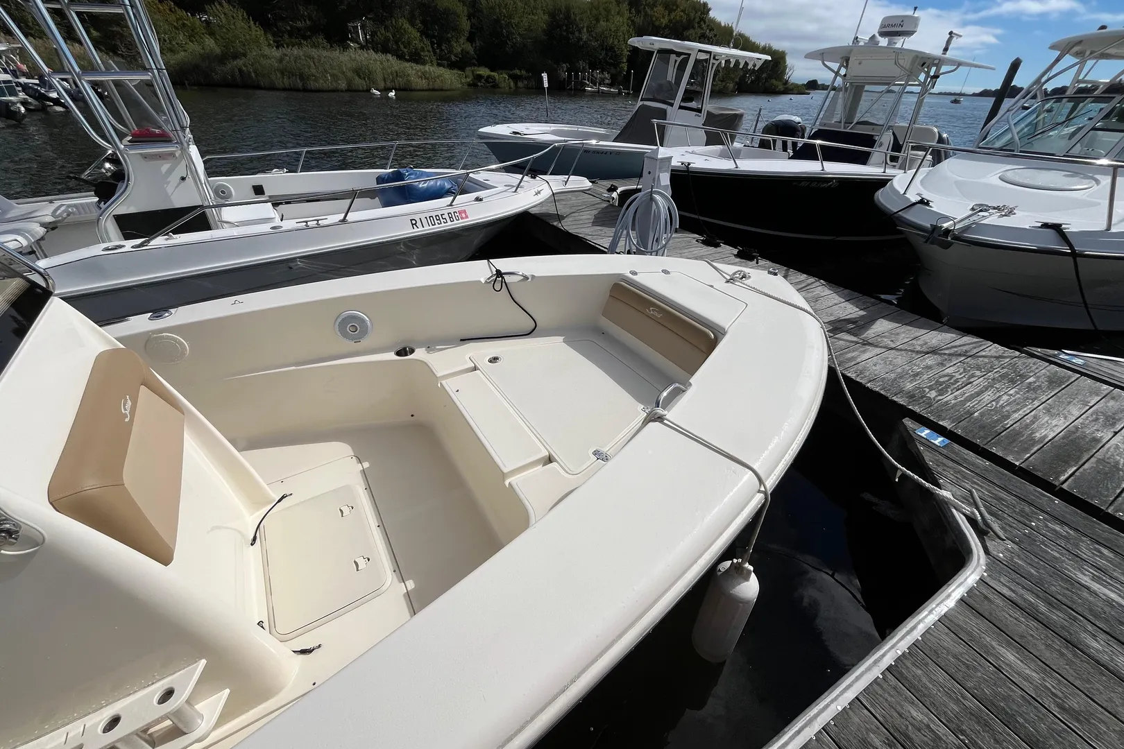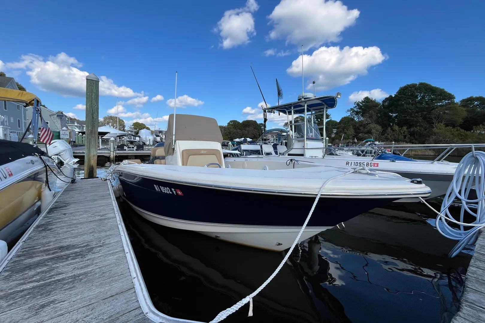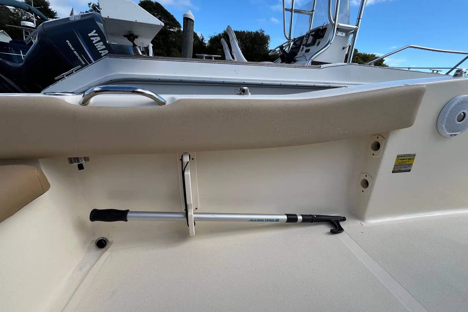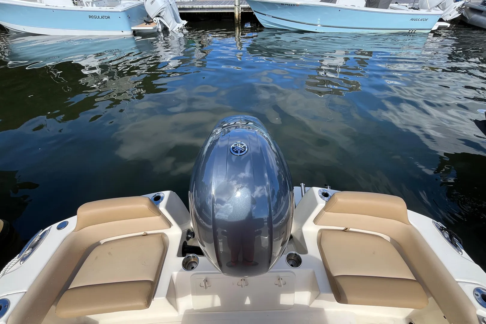 This 2020 Scout 195 Sportfish is powered with a Yamaha F150XB with just 56 hours. To complete the package there’s a Magic Tilt Aluminum Trailer with load guides and spare tire.