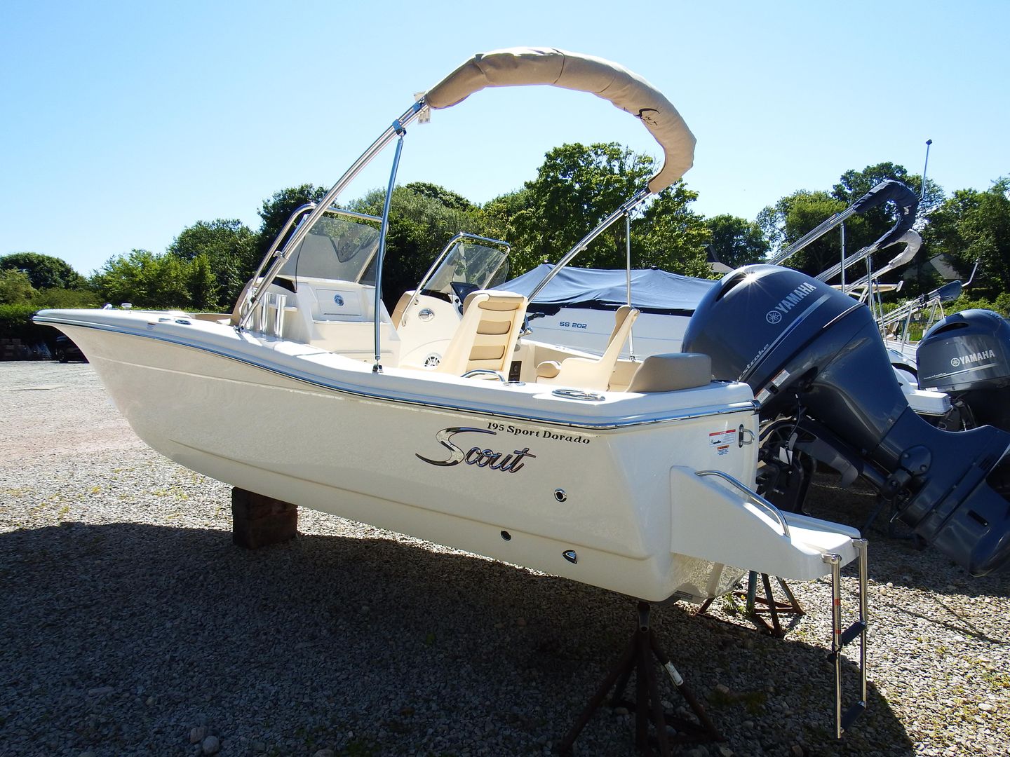 In-stock and available for the 2025 boating season. This Scout 195 Sport Dorado comes powered by the Yamaha F115XB. Factory Options Include: