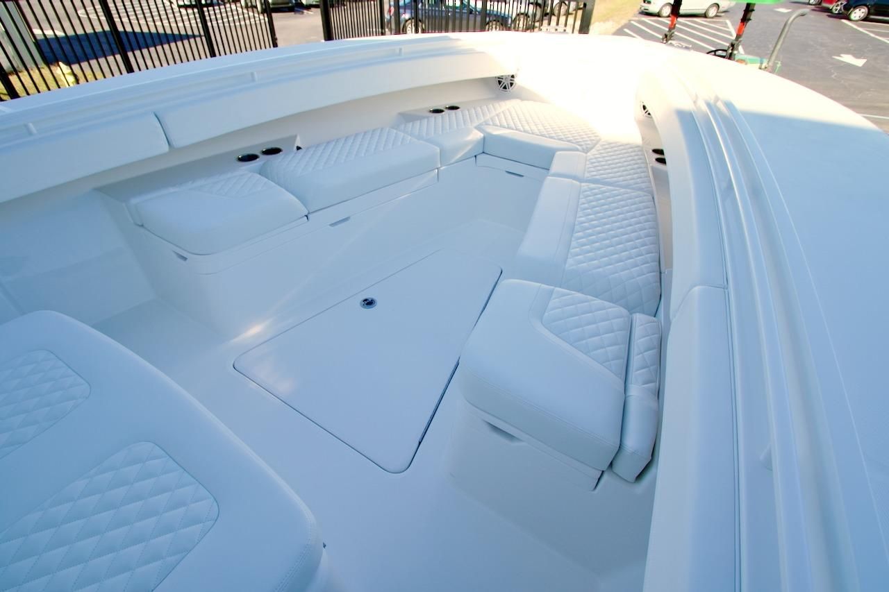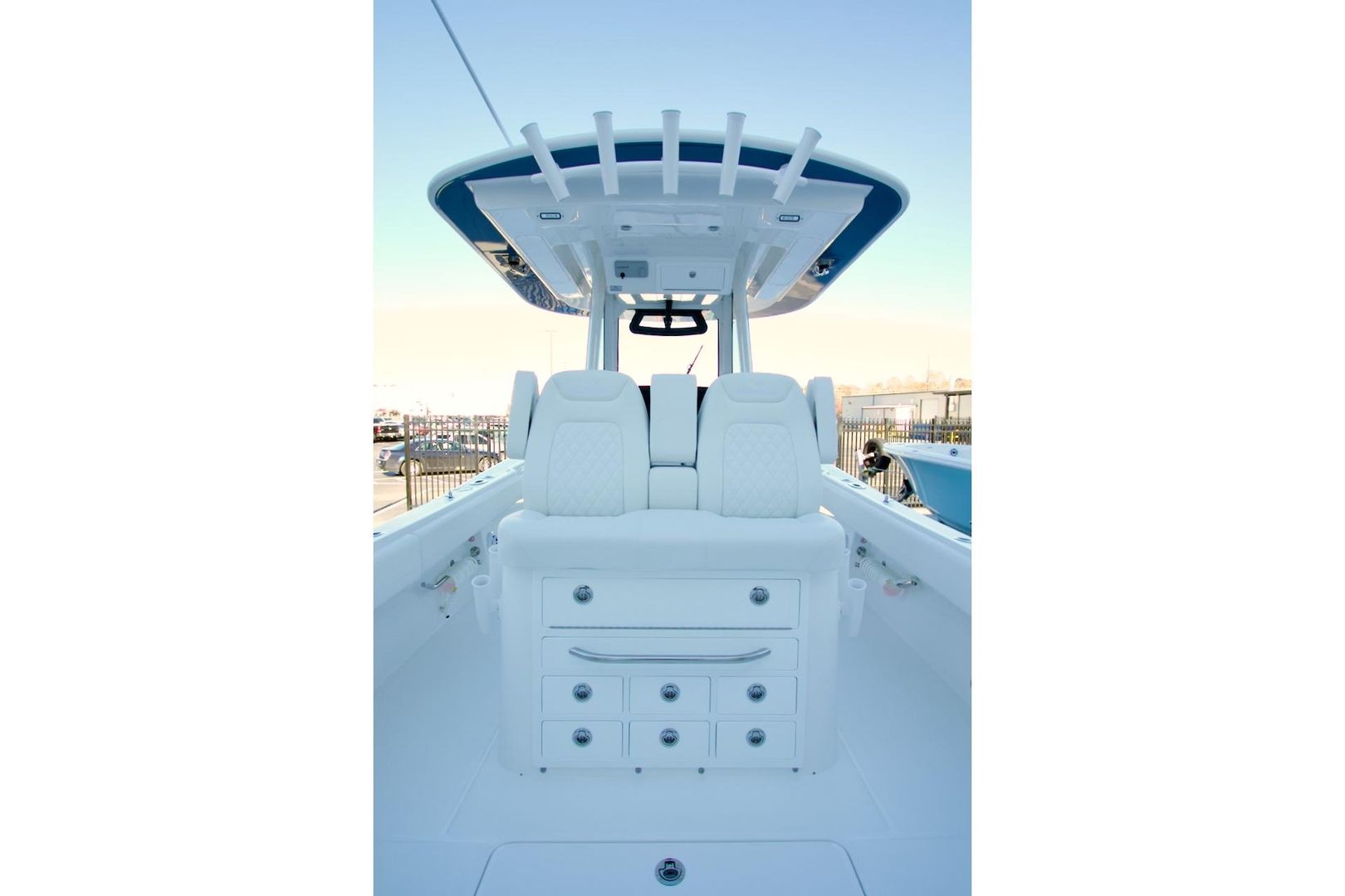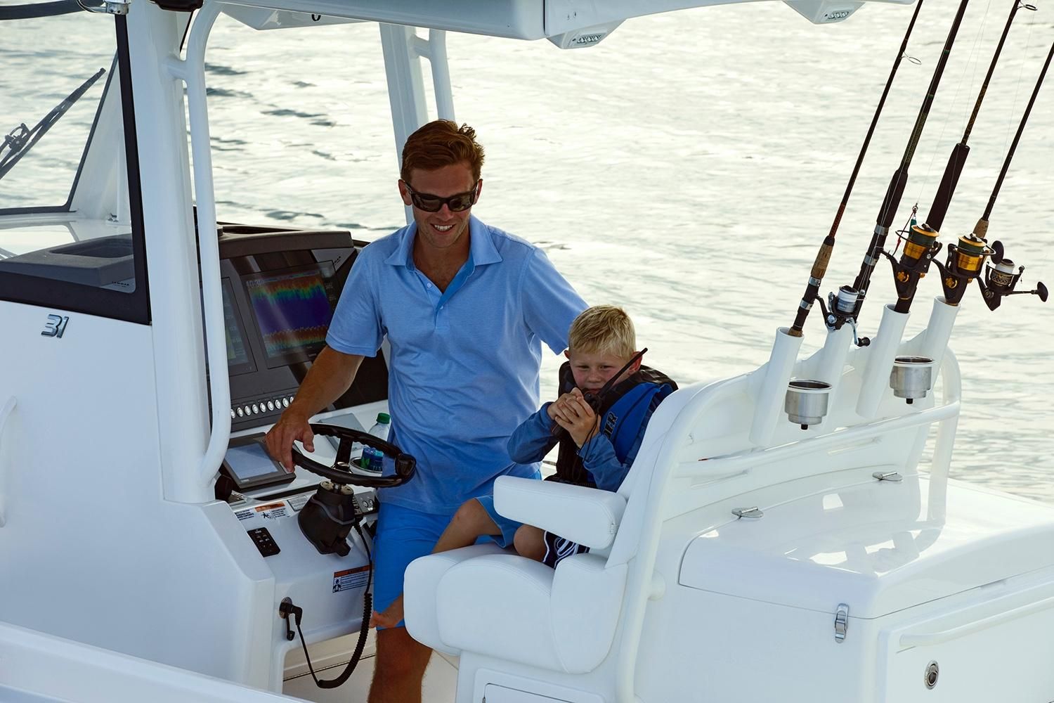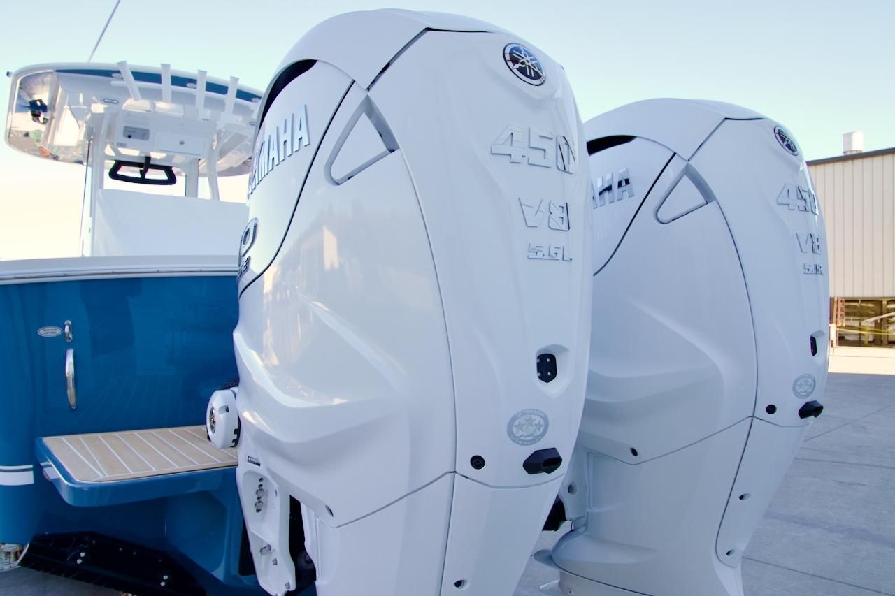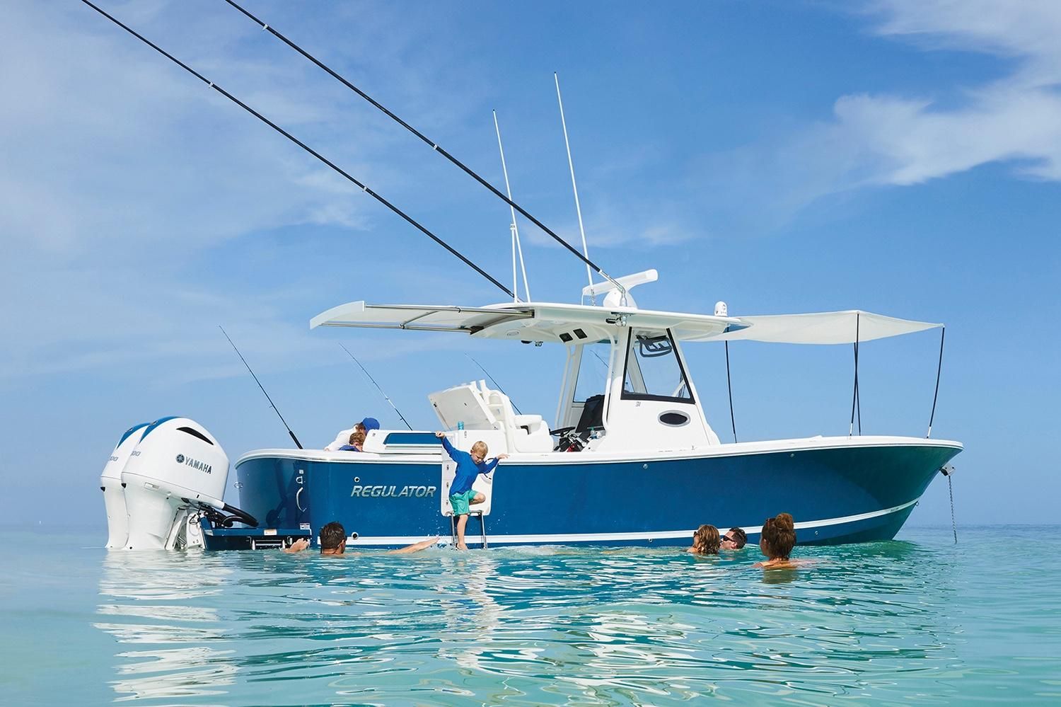 This 31 Regulator is beautifully finished in Gulfstream Blue with a matching hull bracket and T-Top underside, creating a seamless, premium look from bow to stern.